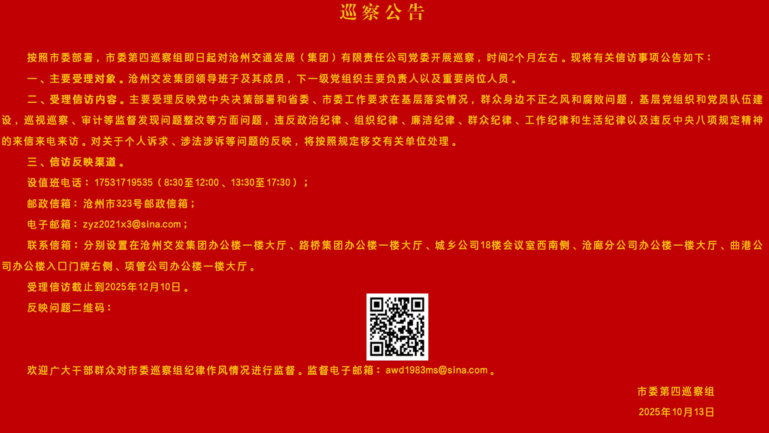市委第四巡察組巡察 滄州交通發(fā)展(集團(tuán))有限責(zé)任公司黨委 工作動員會召開